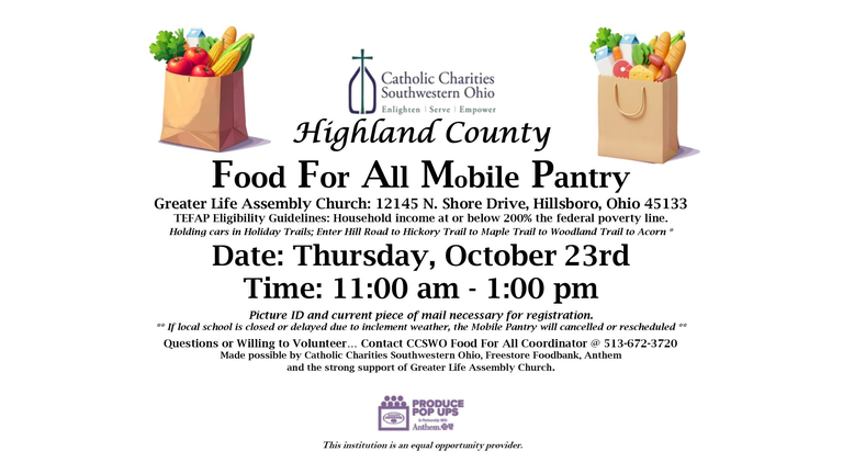Highland County Mobile Food Pantry at Greater Life Assembly Church