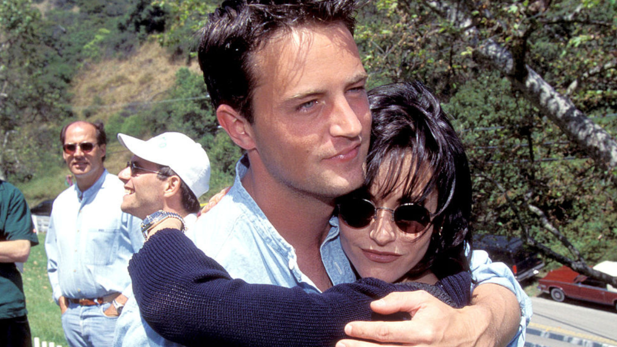 The first photo depicts the late Friends, Lovers, and the Big Terrible Thing author exchanging a genuine smile with Cox as the duo pose for the camera. The second photo features the cast of Friends (Jennifer Aniston, David Schwimmer, Matt LeBlanc, Lisa Kudrow, Perry, and Cox) posing together in matching outfits, all seemingly happy to be by each other's side just as they had been from 1994 to 2004.