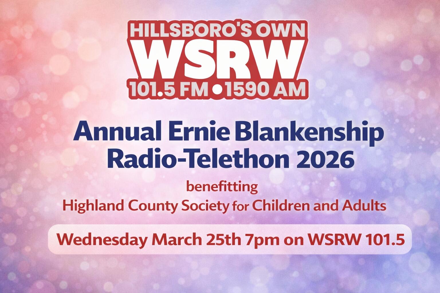 Hillsboro’s Own WSRW will host the Annual Ernie Blankenship Radio-telethon benefitting the Highland County Society for Children and Adults. The event will be on Wednesday March 25th and aired live on WSRW 101.5 from 7-9pm.